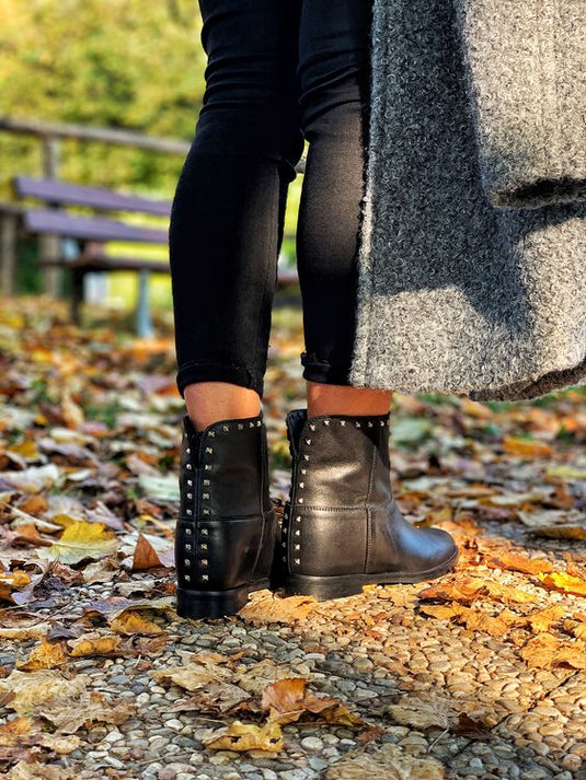 Tomaia in pelle con borchie sul bordo dello stivaletto